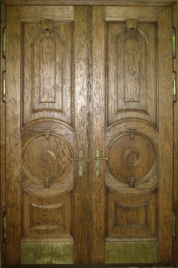 Двустворчатая входная дверь для парадного входа с массивом и отбойниками КД-31