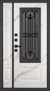 Стальная полуторная дверь с порошковым напылением, ковкой и стеклом создана с учётом потребностей владельцев частных домов, квартир и коммерческих помещений. Благодаря сочетанию эстетики и функциональности дверь отвечает требованиям энергоэффективности и экологичности.