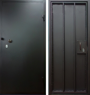 Внутренняя конструкция дверей всех ценовых категорий схожа между собой. Двери эконом-класса состоят из металлического каркаса, к которому приварены листы стали толщиной 2 мм. В конструкцию полотна также входят четыре ребра жесткости, изготовленные из профильной трубы.