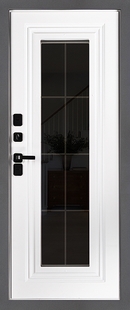 Входная остекленная термодверь с двухцветными панелями МДФ и длинной ручкой с LED-подсветкой